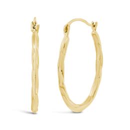 10K Yellow Gold Oval Creole Corrugated Earrings