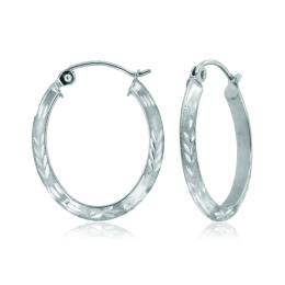 10K White Gold Diamond Cut Oval Hoop Earrings