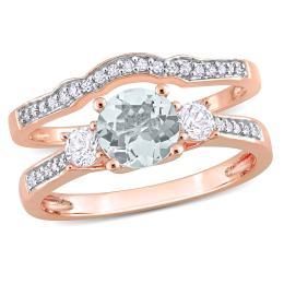 Julianna B 10K Rose Gold Aquamarine and Diamond Bridal Set
