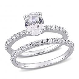Julianna B 10K White Gold Oval Created White Sapphire Bridal Ring Set