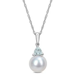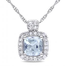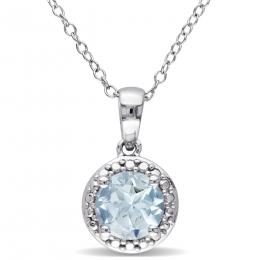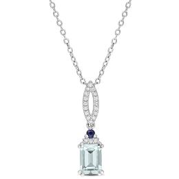 Julianna B Sterling Silver Aquamarine and Blue Topaz Necklace 18" + 2" Extender