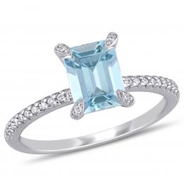 Julianna B 10K White Gold Aquamarine & White Topaz & Diamond Engagement Ring
