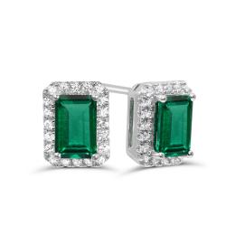 Sterling Silver Created Emerald & Created White Sapphire 18" Pendant