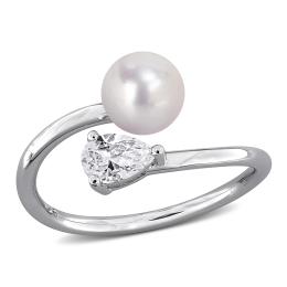 Julianna B Sterling Silver Created White Sapphire & 6-6.5MM Pearl Ring
