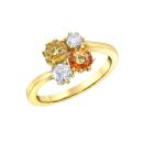 This 10K yellow gold ring features a stunning combination of orange and yellow sapphires, totaling 0.37 carats, alongside sparkling Canadian diamonds. The vibrant sapphires and the brilliance of the diamonds create a striking and elegant piece, perfect for adding a touch of colour and sophistication to any occasion.