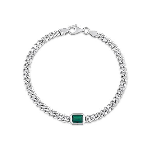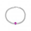 Treasure boldness to your wardrobe with this stylish created pink sapphire bracelet. This opulent bracelet is crafted in lustrous sterling silver and features a single round-cut created pink sapphire gemstone in a bezel setting. This bracelet measures 7.5-inches in length, is embedded on a curb link chain on a spool and is secured with silver lobster clasp. Polished to a brilliant shine, play your dress-up game to any occasion by wearing this statement piece of jewel.