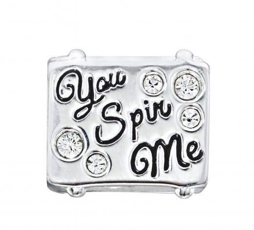 Created with vintage appeal, this musical You Spin Me record player shows style and sophistication. A black rhodium plated record sits atop this .925 sterling silver turntable with Swarovski crystal detailing the top of the needle. Swarovski crystals and the phrase "You Spin Me" decorate the bottom of the bead in jet enamel. Charm measures 1/3 x 1/2 x 1/3 in | 0.85 x 1.27 x 0.85 cm