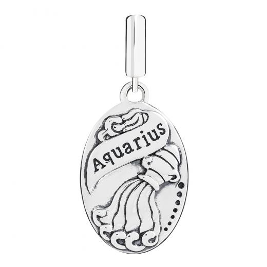 Your sign has been beautifully rendered by our artists in sterling silver. Filled with rich, lyrical detail on the front, it features the Zodiac symbol for Aquarius on the highly polished reverse side. Add this personalized charm to your bracelet or wear it quite stylishly on a neck chain. Includes a charm card describing the traits of this sign.