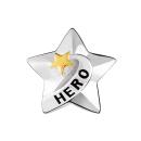 A perfect message for that special woman who always comes through. On one side is “Hero” in black enamel with a gold electroplated star. The other side has Metallic Golden Sunshine Swarovski Crystals.