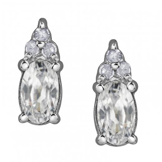 These attractive earrings feature an oval cut White Zircon accented by shimmering diamonds. This birthstone earring is set in 10k gold and enhanced with a high polish finish. White Zircon is the April birthstone, making this earring the ideal choice as a birthday gift, or adding a touch of class to your own jewellery collection.