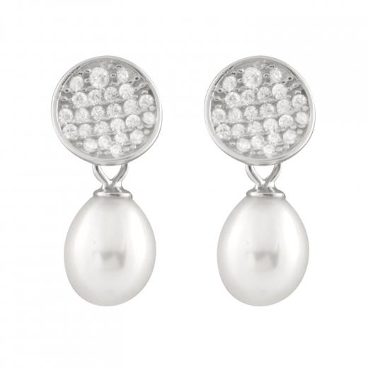 Radiate understated elegance with these exquisite sterling silver earrings, showcasing luminous 7.5-8mm white freshwater pearls. Each pearl is perfectly complemented by a halo of sparkling cubic zirconia, creating a harmonious blend of timeless sophistication and modern brilliance.