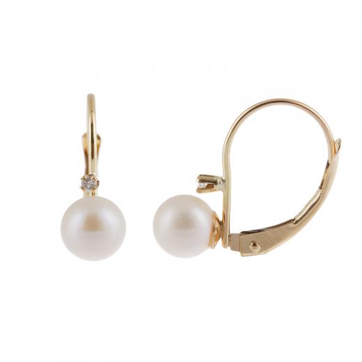 A pair of 1pts diamond accented 5-6mm Round freshwater pearl leverback earrings