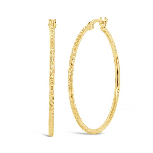 The elongated hoops showcase intricate diamond-cut detailing, casting a mesmerizing play of light with every movement. Their bold yet elegant design adds a touch of refined glamour to any look, making them a statement piece that effortlessly complements both casual and formal attire with their classic allure.