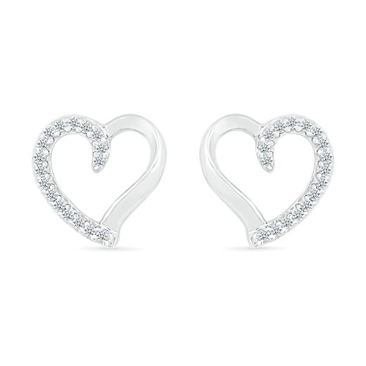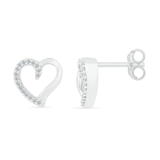 Celebrate love and elegance with these 10K White Gold Diamond Heart Earrings. Crafted in lustrous white gold, these earrings feature charming heart-shaped designs adorned with sparkling diamonds. Their romantic and timeless style makes them a perfect choice for adding a touch of sophistication and sentiment to your look, making these earrings a lovely symbol of affection and a perfect gift for a special someone.