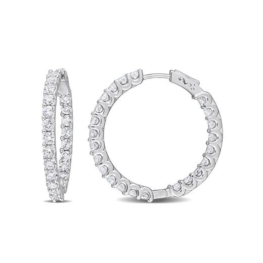 These lovely inside-outside hoop earrings are crafted in shimmering sterling silver. These alluring earrings feature 46 prong-set, created white sapphire gemstones. Enhanced with a high polished finish, these flawless earrings are a must have for every person who loves to have a stylish collection of hoop earrings. A versatile addition to any precious collection.