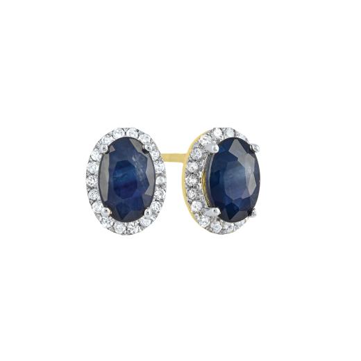These elegant earrings feature stunning sapphires surrounded by a halo of sparkling diamonds, set in lustrous 10K yellow gold. The deep blue of the sapphires contrasts beautifully with the brilliance of the diamonds, creating a luxurious and eye-catching design. Perfect for adding a touch of sophistication and glamour to any occasion, these earrings offer a timeless and refined look.