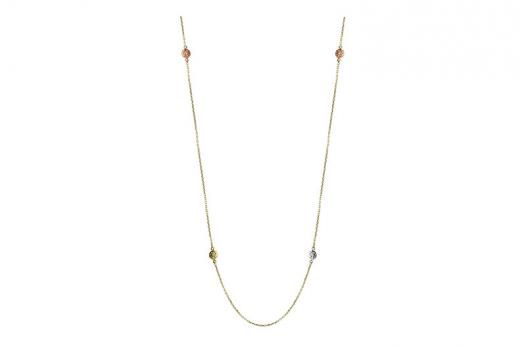 Simple and elegant, this 36” 10k yellow gold chain featuring tri-coloured gold beaded accents is the perfect necklace to add to your layered look, or wear on its own as a classic staple.