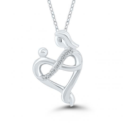 Nothing compares to a warm embrace from a loving mother. Celebrate your mom with this interweaved mothers love infinity heart pendant. Sparkling with a soft wave of diamonds in smooth sterling silver.
