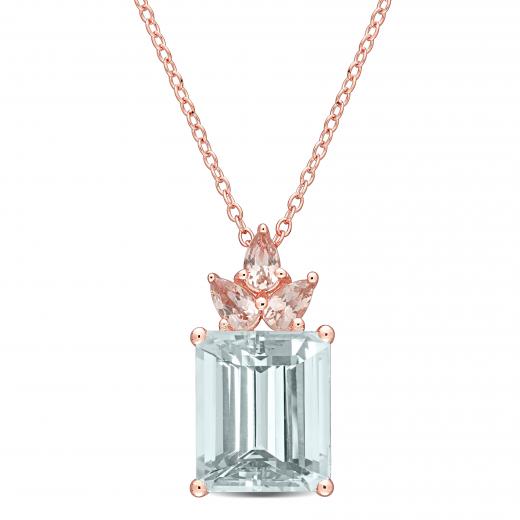 This bold and bright aquamarine and morganite floral crown necklace is crafted in lustrous rose plated sterling silver and features an octagon-cut ice aquamarine at its centre with three pear-cut morganite stones in a brilliant floral drop design. Inspired by pastel tones blended with elegance and shine, instantly add a touch of elegance and class to any look with this stunning gemstone necklace.