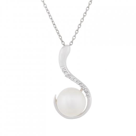 This elegant pendant features a lustrous 10-11mm pearl, complemented by sparkling cubic zirconia accents. Set in sterling silver, the design exudes timeless sophistication, making it the perfect piece to add a touch of refined elegance to any outfit.