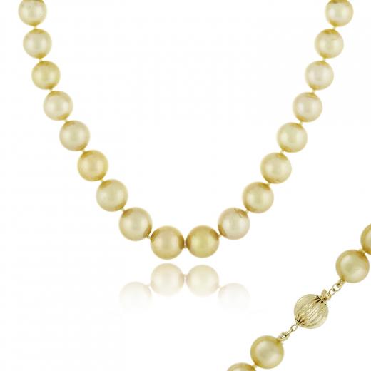 14k yellow gold south 18" necklace, individually hand knotted with a corrugated ball clasp