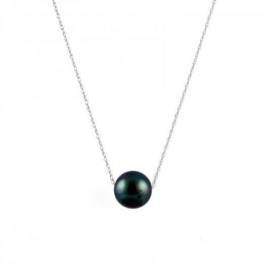 A 17" sterling silver rhodium plated chain with 8-9mm Round tahitian pearl slider