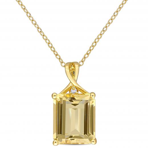 This glistening octagon solitaire drop necklace is crafted in yellow plated sterling silver. This beautiful pendant showcases an octagon-cut citrine gemstone centre stone adorned with a round-cut white topaz gemstone. Enhanced with a high polish finish, this pendant is hung on an 18" cable chain and is secured with a spring ring clasp. Coordinate this necklace with your next evening ensemble and look gorgeous. This outrageous necklace is a perfect choice for your loved one and hence makes a thoughtful gift.
