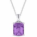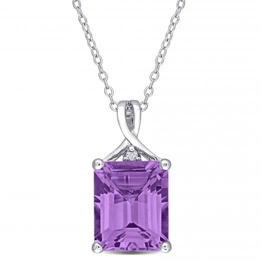 This bright rectangular solitaire necklace is crafted in sterling silver. This beautiful pendant features an octagon-cut, prong-set amethyst centre stone crowned by a round-cut, white topaz gemstone. Enhanced with a high polish finish, this attractive pendant is suspended on an 18-inch cable chain and is secured with a spring ring clasp. This necklace is sure to add a burst of colour and class to any occasion. A versatile addition to your jewellery collection.