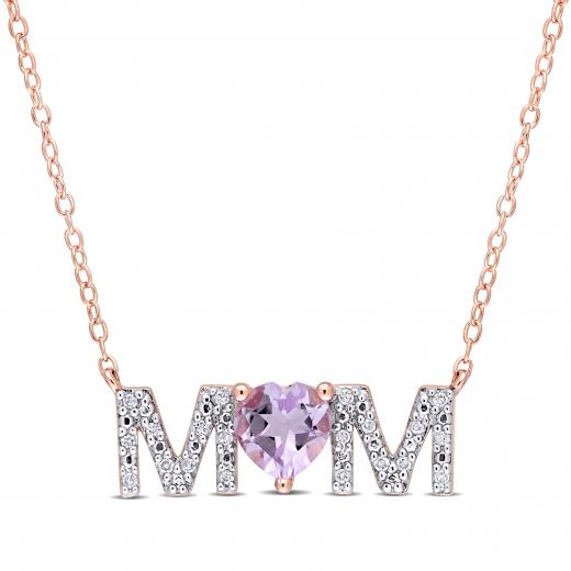 This heart-cut rose de France MOM station necklace is crafted in rose plated sterling silver and features a heart-cut rose de France as letter O in the unique mom design bar. Enhanced with a high polish finish, this fabulous bar pendant is hung on a cable chain and is secured with a spring ring clasp. Choose this gorgeous piece of jewellery for your special mom.