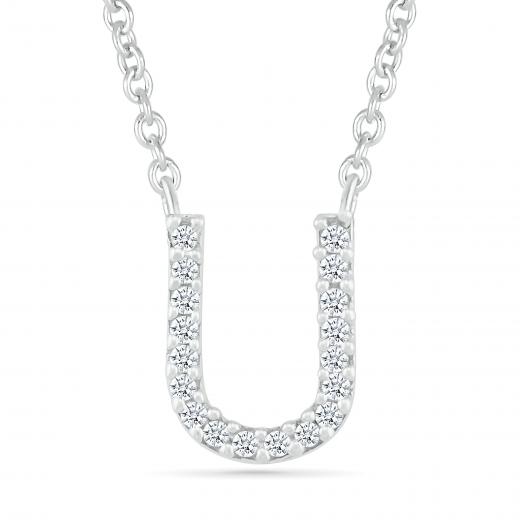 Embrace personal elegance with the Diamond Addiction sterling silver 'U' initial necklace. Adorned with shimmering diamonds, this piece beautifully combines a modern minimalist design with timeless sparkle—a stunning expression of individuality and sophistication.