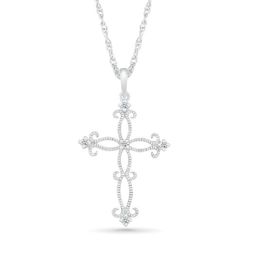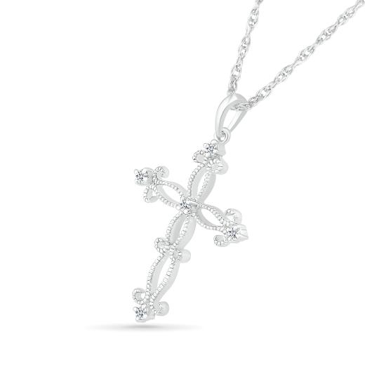 This pendant is a symbol of faith and elegance, featuring a cross crafted in lustrous white gold. The subtle sparkle of diamonds adds a touch of brilliance, creating a meaningful and timeless piece.