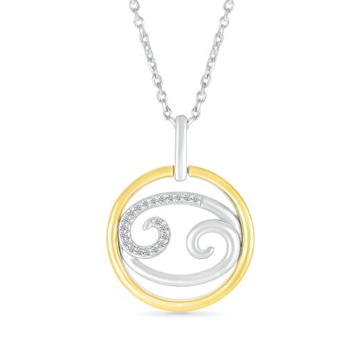 This pendant represents the Cancer astrological sign, often depicted as a crab. The combination of sterling silver, yellow gold, and diamonds adds a touch of sophistication and luxury to the pendant.