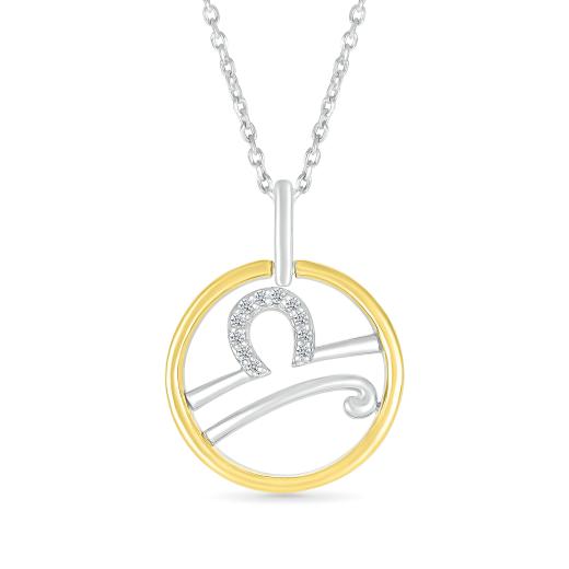 Representing the Libra astrological sign, often depicted as the Scales, this pendant carries a symbolic and stylish design. The combination of sterling silver, yellow gold, and diamonds adds a touch of sophistication and luxury to the piece.