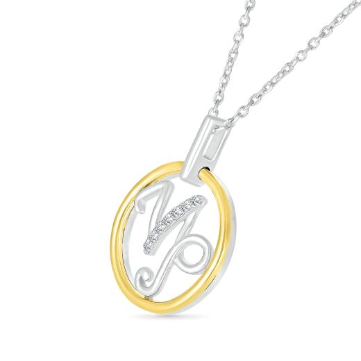 This pendant features a Capricorn zodiac symbol, crafted in a combination of sterling silver and 10K yellow gold, with sparkling diamonds accentuating the design. The diamonds add a touch of elegance and brilliance to the piece, while the mix of metals gives it a modern, sophisticated look.