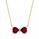 Add a splash of colour to your ensemble with this vibrant bow necklace. This chic necklace is crafted in lustrous yellow gold and features two prong and channel set heart-cut, garnet gemstones with three round, buttercup set diamonds (G-H-I, I2-I3) to form a bow. The pendant is suspended on a 17-inch round cable chain secured with a lobster clasp. Polished to a brilliant shine, this necklace is the epitome of femininity.