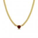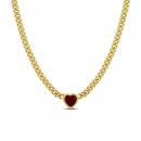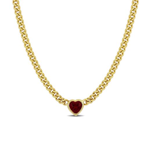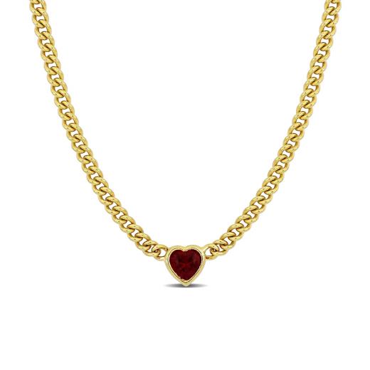Make yourself feel like royalty with this striking heart necklace. Mounted in luminous yellow plated sterling silver, this dainty necklace showcases a heart-cut created ruby gemstone (8x8mm) at the centre. The stone is suspended on an 18-inch curb link chain and comfortably secured with a lobster claw clasp. Enhanced with a high polished finish, this appealing necklace will always remind her of your deep and profound love.