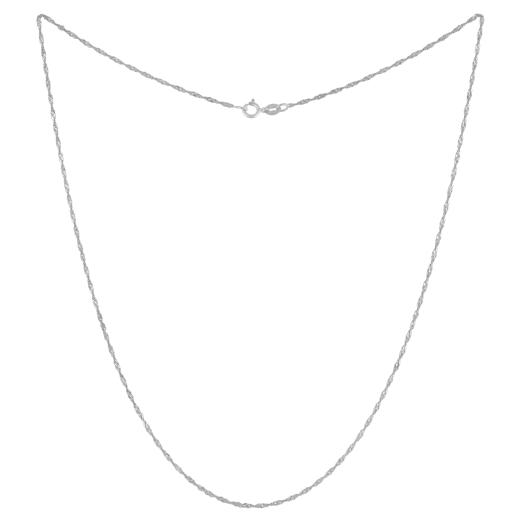 Beautifully crafted in 10k white gold, this gorgeous singapore link chain is the embodiment of simplicity. The chain features highly polished links and is 16 inches in length.