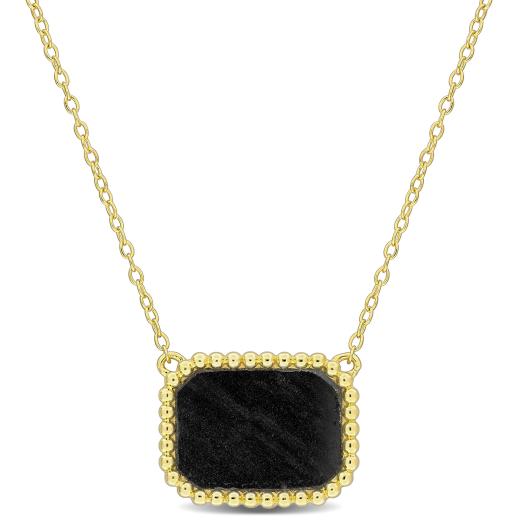 Elevate your style with our 5ct TGW Octagon Shape Hematite Necklace featuring a stunning beaded halo design in Yellow Plated Sterling Silver. The centerpiece of this necklace is a striking octagon-shaped hematite gemstone that exudes sophistication and elegance. With a 17-inch chain, this accessory adds a touch of glamour to any outfit and is perfect for making a bold statement.