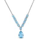 Make a splash with this stunning drop necklace featuring aquamarine and blue topaz gemstones. Crafted in sterling silver, this necklace measures 18 inches with a 2-inch extender for adjustable wear. Its vibrant design and colourful gemstones make it a perfect accessory for adding a touch of elegance and charm to any outfit.