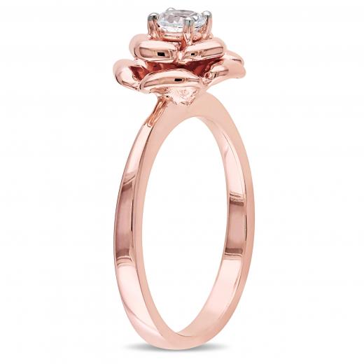 This stylish ring features a round-cut created white sapphire stone set in rose plated silver. The ring offers a high polished finish.