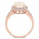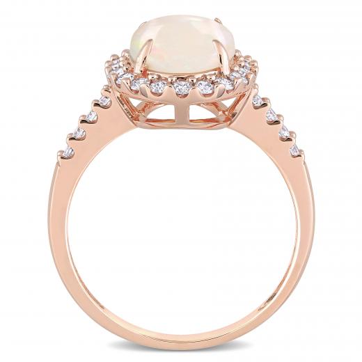 Tell her she is the one with this classy Halo Engagement Ring. Crafted in lustrous rose gold, this ring features an oval-cut opal gemstone at the center surrounded by the halo of dazzling diamonds. This stunning ring is the perfect addition to any jewelry collection. The ring comes in a beautiful gift box and is ready for gifting.
