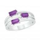 Add some vibrant colour to your look when you wear this unique Amethyst ring. Mounted in gleaming sterling silver, it features three baguette-cut amethyst stones. This gemstone ring has been enhanced with a beautiful high polish finish and is an ideal choice for today's contemporary person. Gift this gemstone ring as a wonderful token of love and make them feel special.