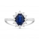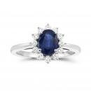 Add a royal appeal to your outfit with this blue sapphire & diamond halo ring.  Crafted in luminous 14k white gold this ring features a gorgeous blue sapphire at its centre surrounded by a halo of shimmering diamonds.  This sapphire ring is an ideal piece of jewellery for any occasion and is sure to make that someone special smile.