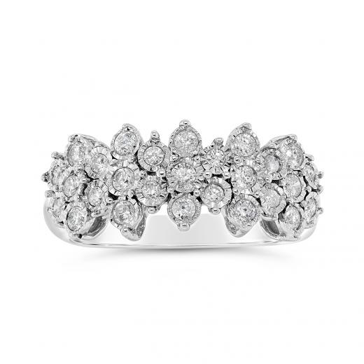 This band is a versatile accessory, suitable for everyday wear or formal occasions. Its combination of sterling silver and diamonds creates a timeless and elegant aesthetic.