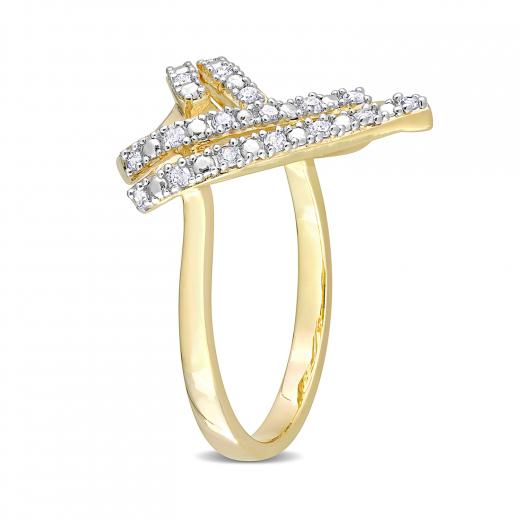 This modern diamond open heart ring is crafted in yellow plated sterling silver. This fantastic ring features 20 round-cut sparkling diamonds augmented in a double heart pattern. A splendid addition to your jewelry collection. Wear it with any outfit to look breathtakingly beautiful.