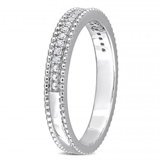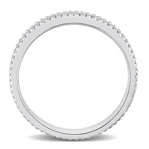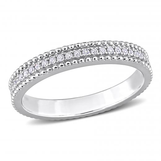 This diamond stacking semi-eternity ring is crafted in lustrous sterling silver. This classic anniversary ring features 20 round-cut buttercup-set white diamonds in a unique eternity band design. Whether worn as a wedding band, anniversary band or simply a gorgeous stackable piece, this diamond ring is sure to make a standout addition to any jewelry collection. Choose this outstanding wedding ring either for yourself or someone you love.