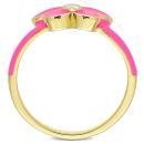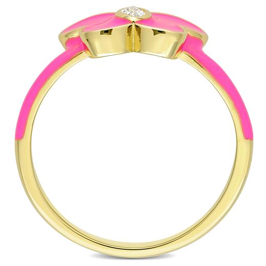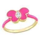 This charming butterfly enamel ring is crafted in lustrous yellow plated sterling silver and features a marquise-cut, bezel-set, created white sapphire gemstone studded at the center of butterfly design on pink enamel. Polished to brilliant shine, this flickering ring makes a valuable addition to any jewelry collection. The perfect finishing touch to your child's outfit, this adorable ring is the stylish addition to any look.