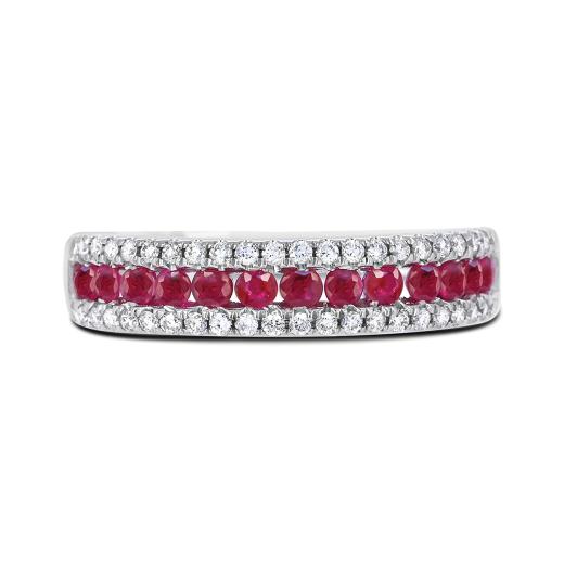 This lovely ruby & diamond ring is a true classical beauty. Crafted in lustrous 14k white gold, this elegant ring is perfect for any occasion.