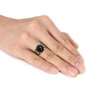 Make a bold statement with this stunning Men's ring featuring a 6ct TGW black agate gemstone. The unique split-shank design adds a modern touch to the classic rope detailing, while the 2-tone yellow and black rhodium plated sterling silver setting gives the ring a luxurious feel. Perfect for adding a touch of elegance to any evening outfit or special occasion. The ring is available in a range of sizes to ensure the perfect fit.
