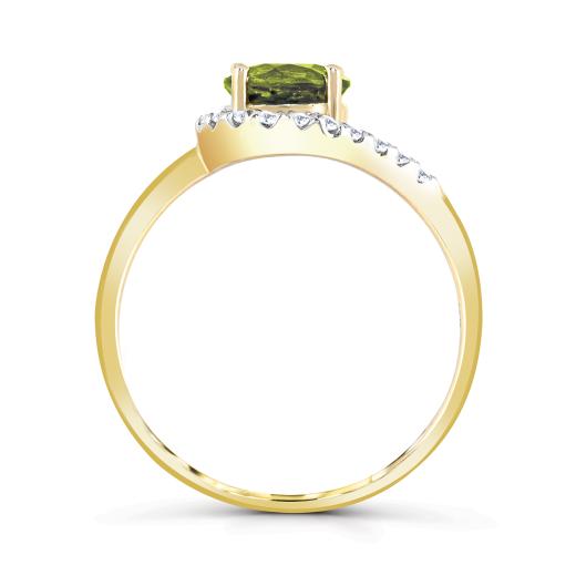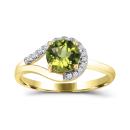 This exquisite ring features a captivating peridot at its center, beautifully complemented by sparkling diamond accents. Crafted in radiant yellow gold, it embodies timeless sophistication and natural allure.